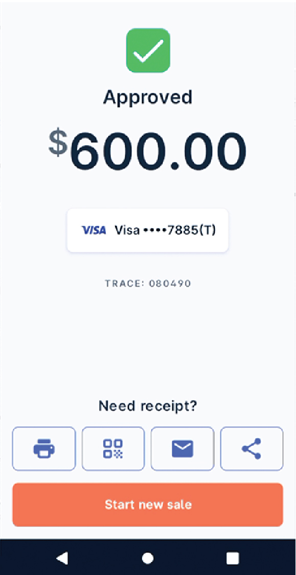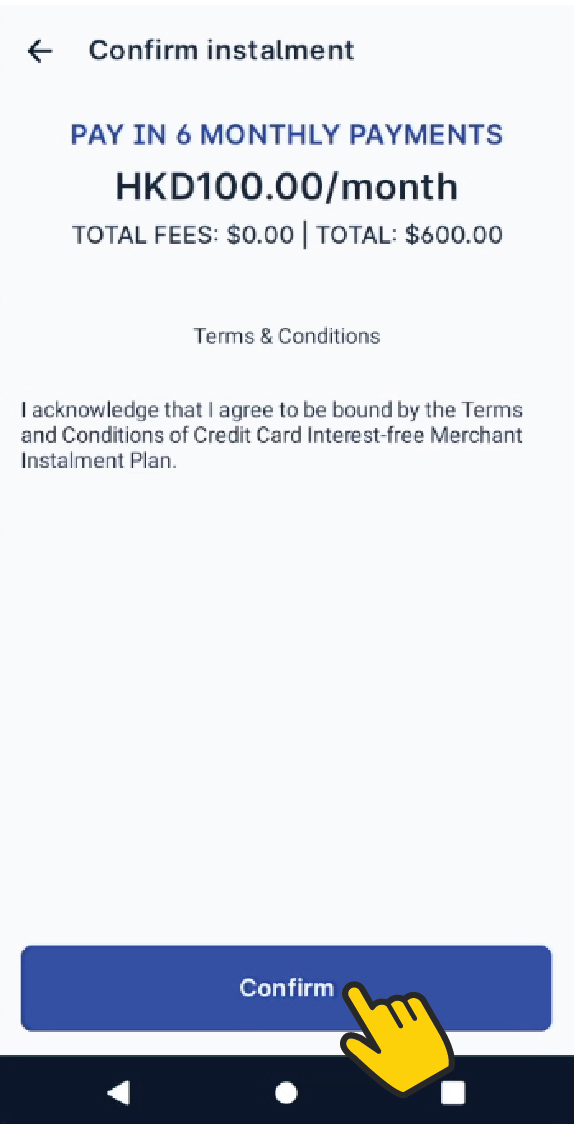 7. Upon completion of the instalment transaction, you will see Approved. The app will save the receipt copy in the device’s album automatically on every approved transaction. Also, you can issue the receipt by clicking print、showing the QR code to your customers, email or other methods available. |